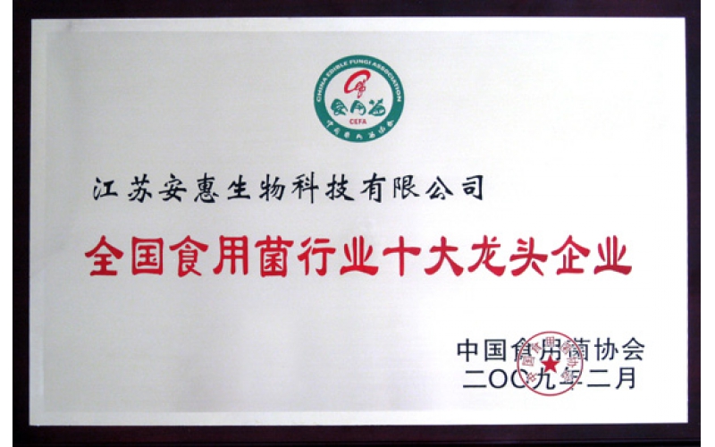 2009年2月25日,在中國食用菌協會第四屆第四次常務理事(擴大)會議上,安惠公司被授予“全國食用菌行業十大龍頭企業”稱號。