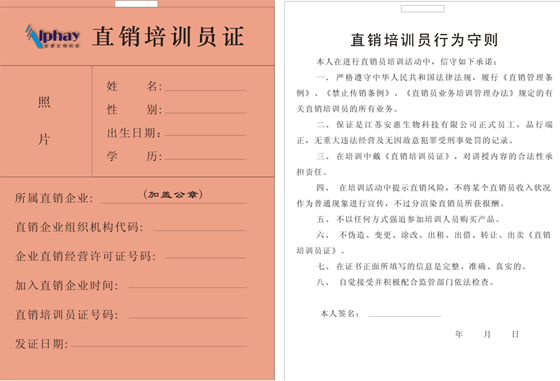 您現(xiàn)在的位置 >> 直銷信息披露 >>直銷培訓(xùn)員證樣本